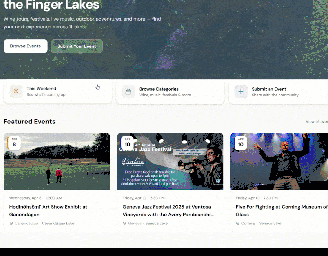 If you know someone who organizes events in the Finger Lakes, please share the site with them - free to submit, easy to use, and part of the Finger Lakes Effect community.